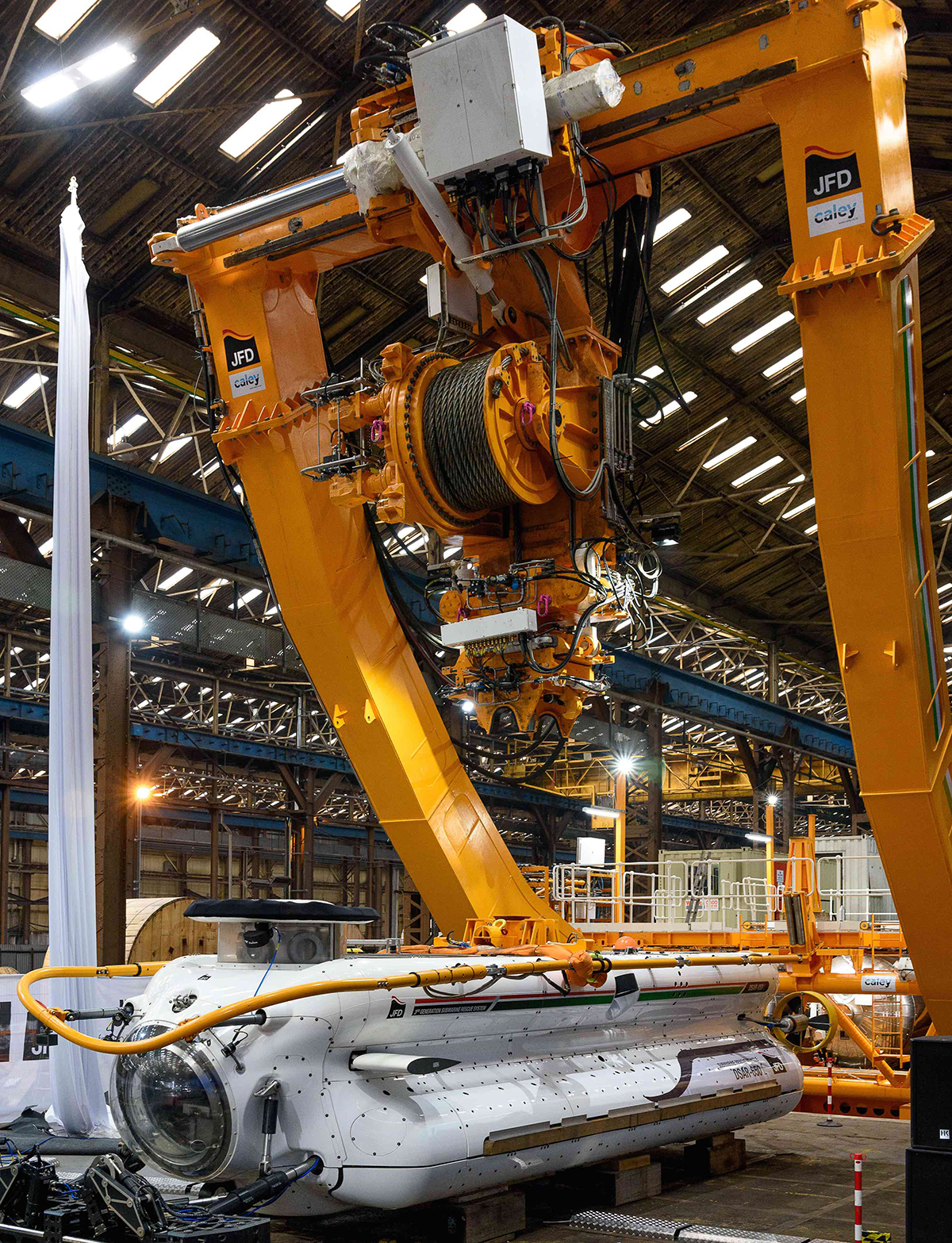 Certified to operate in Sea State 6 – some of the harshest sea conditions – this new 3rd Generation Submarine Rescue System from JFD includes a Launch and Recovery System (LARS) from Caley Ocean Systems, as part of a system designed for the fast rescue of submariners in distress, and capable of being mobilised in less than 24 hours.