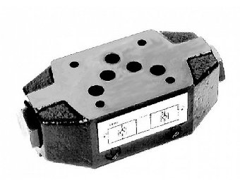 AM5UP type modular check valves allow free flow in one direction by lifting a conical steel seated poppet, while in the opposite direction the fluid can return by means of a small piston piloted by the other line pressure (piloted side).