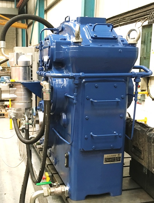 The build and refurbishment – with new and existing parts – was undertaken by the service team. Bore liners were fitted prior to installing bearings and axial floats set, checked and recorded. As part of the test, paint and dispatch procedure, the internals were reset and gear contacts verified. The unit was spin tested with bearing temperatures monitored to ensure they plateau at an acceptable level. The lube system was also refurbished. These particular units were upgraded. An additional large area high efficiency filter together with a remotely monitored particulate sensor were added. The unit was tested with a throw away filter element, which was then replaced with new on completion ready for despatch.