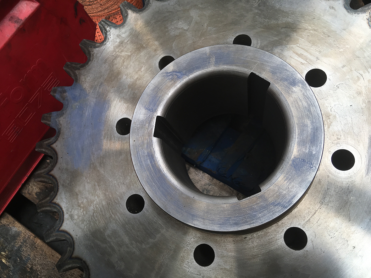 Image 3 – The replacement timing gear, which transmits drive to the crusher shaft was made with revised hub detail, three keys and a carefully controlled shrink fit were employed.